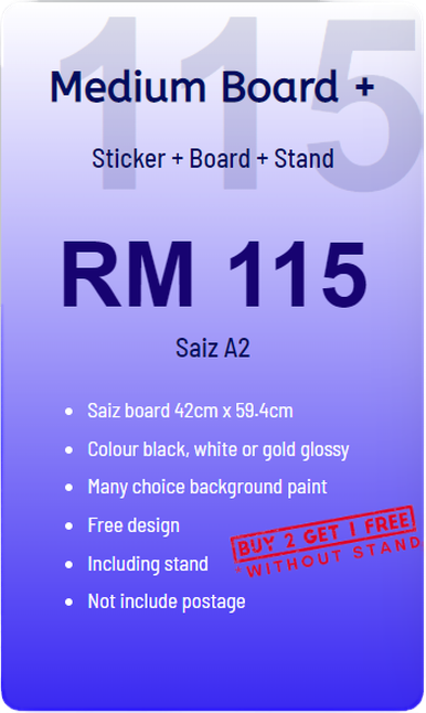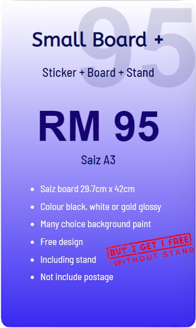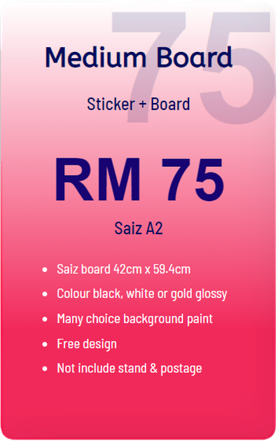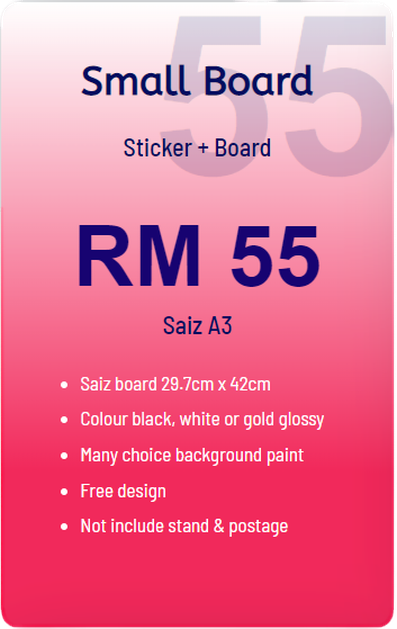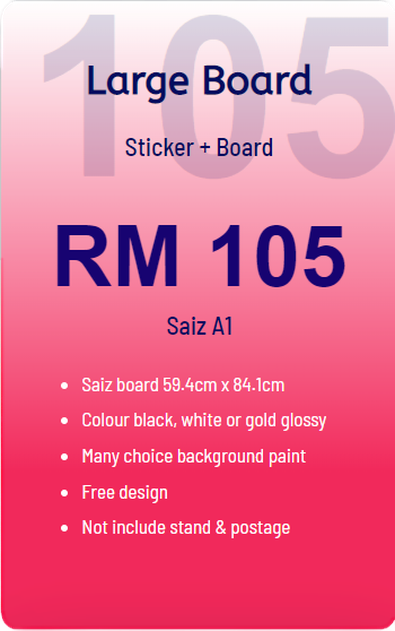 Sila buat pilihan pakej berdasarkan keperluan anda. Sila hubungi kami sekiranya anda kurang pasti mengenai saiz welcome board yang sesuai untuk majlis anda untuk kami bantu segera. Apa sahaja perkara/pertanyaan mengenai welcome board?