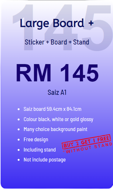 Anda malas nak pening DIY welcome board? Dapatkan welcome board full set dari kami. Hanya tempah dan boleh terus digunakan. Dapatkan harga welcome board anda di bawah.
